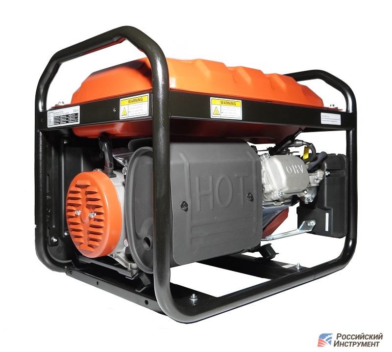 Дополнительно установлен глушитель, который позволяет снизить уровень шума. Мощность двигателя оптимальна для работы сразу нескольких потребителей с высокими требованиями к силе тока.