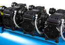 Компрессорная установка с тремя современными 2-х цилиндровыми двигателями 1,5кВт с пониженным уровнем шума и увеличенным количеством оборотов 2650 об/мин. 6 рабочих цилиндров способны поднимать давление в баке 100л с 0 до 8 Бар за 2 минуты. С помощью электронного блока управления в компрессоре реализовано последовательное включение двигателей в зависимости от расхода воздуха, что позволяет экономить энергию и обеспечивает низкий пусковой ток. Уровень шумового давления компрессора сравним с громкостью обычного человеческого разговора, что делает его идеальным для работы в помещениях. Защита от перегрева и Защита от перегрузки предохраняют компрессор от критических состояний. Порошковая покраска ресивера - высокая антикоррозийная стойкость, стойкость к перепадам температуры, механическим воздействиям, ультрафиолету (почти не выцветает), декоративность. Реле и регулятор давления  с манометрами на входе и выходе позволяют создавать давление максимально приближенное к требуемому  потребителем, а также наглядно наблюдать и контролировать возможные перепады или недостатки компрессии. Удобная конструкция предоставляет хороший доступ к каждому рабочему элементу для осуществления обслуживания или его легкой замены. Благодаря простой конструкции сменного воздушного фильтра достаточно всего несколько приемов, чтобы быстро и легко его очистить или заменить. Удобный кран для удаления конденсата обеспечивает простую очистку ресивера для улучшения качества подаваемой воздушной массы.