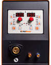 На панели управления источника питания расположены 2 цифровых дисплея, которые отображают скорость подачи проволоки, значения сварочного тока, сварочного напряжения и функции Arce Force. С помощью трёх ручек можно регулировать сварочный ток в режиме MMA, функцию Arc Force и индуктивность в режиме MIG/MAG.