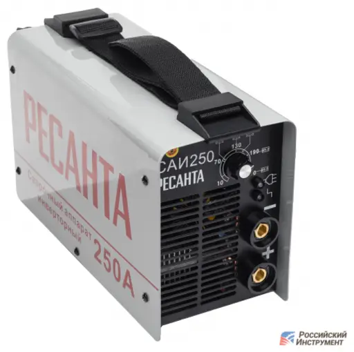 - Удобная регулировка. Регулятор инвертора Ресанта САИ 250 с простой символикой позволяет быстро настроить аппарат на необходимый режим сварки.