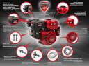Данная модель оснащена катушкой освещения (генератором) силой тока 18 Ампер. Во время работы двигателя вырабатывается ток, который вы можете использовать для подпитки аккумулятора и использования электроприборов (фары, подогрев, звуковые сигналы).