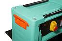 - Мощный переносной станок для строгания деревянных заготовок шириной до 330мм с двумя удлинителями стола, оснащенными специальными роликами для облегчения подачи габаритных заготовок и их поддержки на входе и выходе.