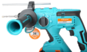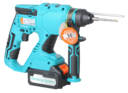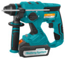 - Аккумуляторный перфоратор упакован в пластиковый кейс для удобства хранения и переноски.