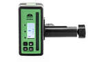 Режим работы с приемником. Для работы на больших расстояния используется приемник лазерного луча который входит в комплект. Закрепив его на рейке можно производить измерения на территории диаметром до 500 метров.