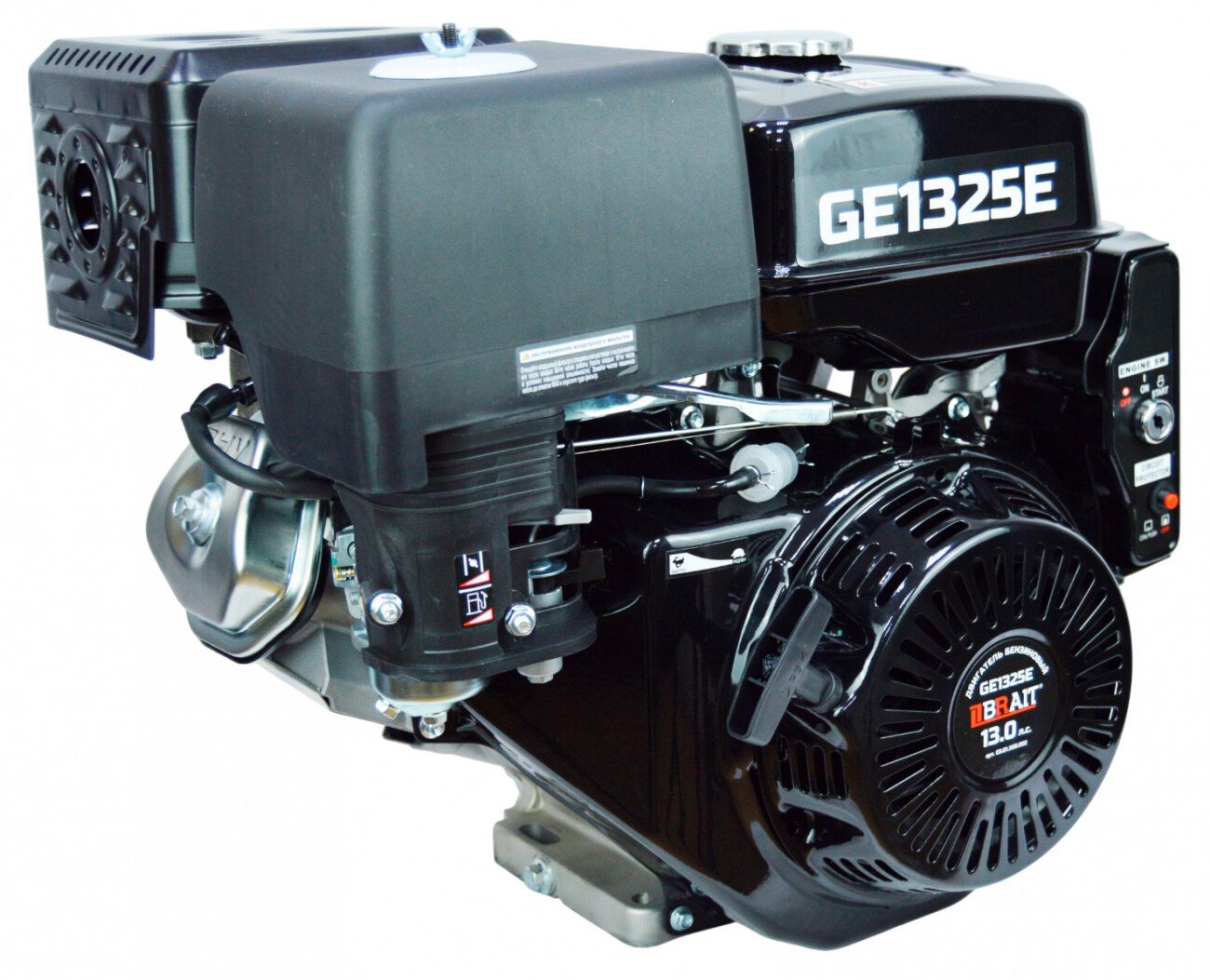 Характеристики Двигателя бензиновый GE1325E (13л.с;диаметр вала 25мм;ручной и электростартер;1-цилиндр;4-тактный;бак 6,5л;раб.объем 389куб.см) 18шт/пал