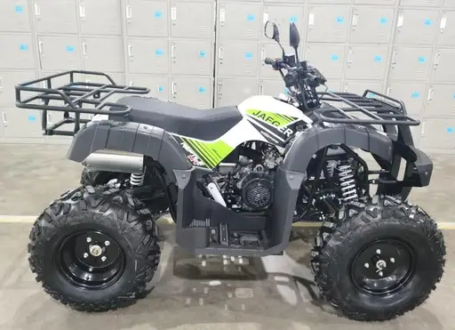 У двигателя ATV Jaeger 150 есть ручной стартер, в качестве аварийного варианта запуска, также есть радиатор масляного охлаждения, для повышения ресурса двигателя. Также стоит отметить, что данный ATV имеет фаркоп, за который можно зацепить любой вид прицепов для квадроциклов, а также при необходимости можно зацепить автомобильный прицеп.