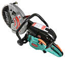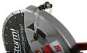 Бензорез имеет большой объем двигателя-58см3 мощностью 2,6кВт / 3,5л.с., что гарантированно обеспечивает высокую производительность работ. К особенностям модели можно отнести: установленный профессиональный карбюратор фирмы WALBRO, использование подшипников NSK (Япония) в узлах для увеличения срока эксплуатации инструмента, свеча зажигания профессионального класса NGK. Бензорез укомплектован диском с алмазным напылением диаметром 350мм, обеспечивающим гглубину реза - 125мм. Система подачи воды делает возможным не только сухой, но и мокрый режимы резки.