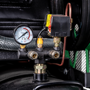 Например, компрессор может подключаться к ударному пневмоинструменту. Аппарат имеет высокопроизводительную компрессорную головку с поршнями увеличенного диаметра – 120 мм и комплексной системой теплозащиты включающую такие элементы как, спицы приводного шкива в виде лопастей, медные нагнетательные трубки с дополнительной обрешеткой, чугунные стенки и крышки цилиндров с крупными ребрами охлаждения. Также надежность и высокий ресурс коленвала обеспечивает увеличенный объем масляного картера. Данная модель оснащена 4 быстросъемными выходами. Для подключения чувствительного к влаге и маслу инструмента, например, краскопультов, для двух быстросъемных выходов в компрессоре предусмотрено наличие интегрированного фильтра-осушителя с регулировкой давления. Также на корпусе ресивера имеется два выхода в которые при необходимости может быть установлен шаровый кран 1/2" для максимальной подачи воздуха с минимальным внутренним сопротивлением. Безопасность работы обеспечивает автоматическое реле давления с манометром и аварийный (перепускной) клапан сброса давления. Ременная передача и шкивы закрыты решеткой, предотвращающей ее повреждение, а также травмирование пользователя в случае обрыва ремня. Четыре колеса обеспечивают возможность перемещения устройства. Ресивер имеет сливной кран для конденсата и качественное покрытие, препятствующее образованию коррозии.