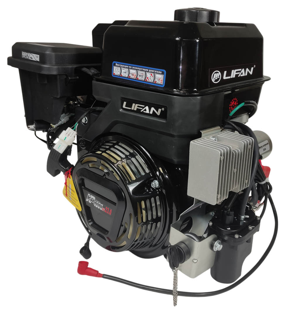 Двигатель Lifan KP460E EFI D25 18А — это мощный и надёжный четырёхтактный бензиновый двигатель с одним цилиндром. Он оснащён электростартером, что упрощает запуск двигателя. Также есть возможность ручного запуска.
