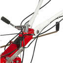 - Оснащен 4-тактным двигателем с мощностью 15 л.с, рассчитанным на обработку крупных участков земли площадью до 10 гектар.