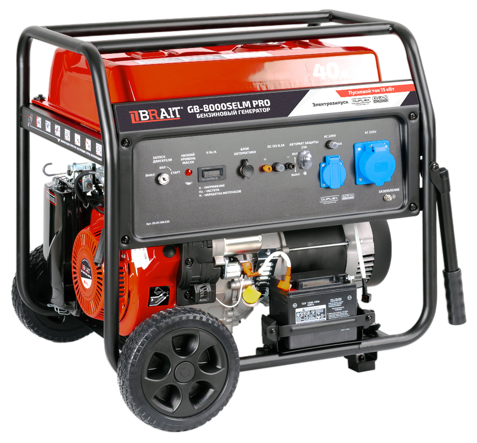 Генератор бензиновый Brait GB-8000SELM PRO (8 кВт, 220в, пусковой ток 15 кВт, возможность автозапуска)