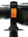 Дополнительный режим установки долота в любых угловых положениях упрощает проведение работ. Плавная регулировка оборотов позволяет аккуратно начинать засверливание и использовать перфоратор в качестве миксера с применением специальных насадок. Функция реверса реализована поворотом щеточного узла, что позволяет сохранять одинаковую мощность при любом направлении вращения и снижает вероятность выхода из строя выключателя. Фиксация клавиши пуск для удобства продолжительной работы. Дополнительная рукоятка с креплением для ограничителя глубины сверления быстро регулируется в наиболее удобное для оператора положение с помощью одной руки. Предохранительная муфта защищает инструмент и оператора при заклинивании бура. Эргономичный корпус имеет резиновую противоскользщую вставку на задней рукоятке, выполнен с применением нейлона, стойкого к ударам и низким температурам.