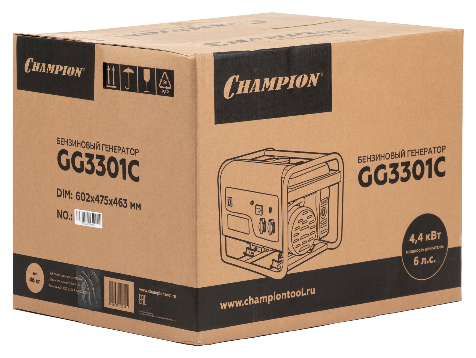 Бензиновый генератор CHAMPION GG3301C (3.1 кВт, пусковой ток 7 кВт)