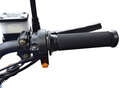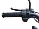 На левой ручке руля скомпонован переключатель ближнего/дальнего света, выше и правее переключатель режимов освещения (3 позиции), поворотники, сигнал. На правой ручке есть только запуск двигателя и тормозной рычаг.