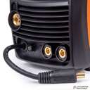 - Многофункциональный регулятор (Позволяет выбрать любой параметр сварки нажатием на регулятор и установить необходимые значения выбранного параметра вращением регулятора по или против часовой стрелки. Также этот регулятор работает в режиме кнопки для подтверждения выполняемых операций)