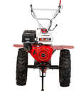 Двигатель этого агрегата имеет мощность 17 лошадиных сил, произведён по спецификации знаменитого завода LIFAN. Топливный бак объёмом 6.5 литров и экономичный расход топлива, дают возможность долгое время работать без дозаправки. Высококачественная коробка передач имеет 2 скорости вперёд и 1 назад. Аппарат оснащён мощным, цельнолитым чугунным редуктором, созданным специально для эксплуатации в жёстких условиях на тяжёлых грунтах и для обработки целины. Зубчатая передача, которая сообщает крутящий момент двигателя колёсам и фрезам, отличается надёжностью и долговечностью. Сцепка мотоблока изготовлена с большим запасом прочности и позволяет работать не только с сошником, плугом или окучником, но и с телегой.
