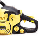 Два способа активации тормоза цепи повышают безопасность труда. Двигатель с хонингованной, покрытой твёрдым хромом поршневой группой, прекрасно сбалансирован, стабильно работает без потери мощности при изменении положения инструмента. Система стабилизации двигателя обеспечивает достаточную производительность в широком диапазоне оборотов и мгновенное ускорение цепи для более эффективного пиления. Усиленный картер двигателя и кованый коленчатый вал обладают исключительной прочностью и долговечностью. Модель способна эффективно работать как в сильную жару, так и в условиях низких температур. Дополнительно предусмотрен праймер подкачки топлива, чтобы обеспечить возможность завести холодный мотор бензопилы в сложных условиях. Постоянную готовность к работе поддерживает возвратный механизм стартер, автоматически приводя его в пусковое положение для выполнения быстрого последующего запуска. Регулируемый масляный насос приостанавливает смазку при работе в холостом режиме и позволяет настраивать подачу масла в соответствии с потребностями. Быстросъемное крепление воздушного фильтра существенно облегчает его чистку или замену. Антивибрационная система эффективно поглощает вибрацию и защищает здоровье оператора. Удобное крепление крышки двигателя существенно облегчает чистку и замену свечи и воздушного фильтра.