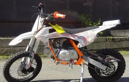 Особенностью данного питбайка является то, что он имеет размерность колес 14 на 12 дюймов, в отличие от стандартного размера колес 17 на 14 дюймов, это дает следующие преимущества. Этот питбайк имеет стандартный двигатель для питбайков объемом 125см3 и колеса 14 на 12 дюймов делают его легче, соответственно имеет большую удельную мощность, а размер колес дает больший крутящий момент, что позволяет быстро ускоряться и вскарабкиваться в крутые горы. Это спортивный вариант для покатушек, также другие его параметры более спортивного типа, у него отсутствует светотехника и приборная панель, также установлен глушитель типа прямоток. В сумме мы получаем чисто спортивный тип питбайка, на котором могут ездить люди относительно невысокого роста, также плюсом для людей невысокого роста является то, что они могут достать до земли, что очень важно в случае с питбайками, потому что это внедорожный и зачастую грязевой вариант. Что касается подвески, рычагов управления, рулевого управление и конструкции, в этом питбайке все сделано на достаточно высоком уровне, поскольку фабрика X-motos специализируется на производстве именно внедорожных мотоциклов, в том числе и питбайков. Малые габариты этого питбайка позволяют проще его перевозить, в некоторые внедорожники он помещается полностью, также его проще доставать из грязи при необходимости. В сумме все вышеперечисленное дает комфортные ощущения от спортивной езды на компактном мотоцикле.
