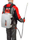 Плечевая оснастка с мягкой подкладкой обеспечивает комфорт при длительной работе. А телескопический брандспойт с регулируемой длиной позволяет обрабатывать даже труднодоступные участки.