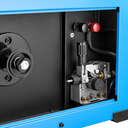 - Металлический механизм подачи проволоки. В аппарат можно установить катушку с проволокой весом 5 и 1 кг. Аппарат поставляется с установленным подающим роликом 30х10х10 для стальной проволоки диаметром 0,8–1,0 мм.