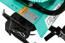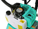 Система легкого старта обеспечивает бесперебойный запуск двигателя без особых усилий. Дополнительно предусмотрен праймер подкачки топлива и карбюратор с двухдиапазонной воздушной заслонкой для подготовки уверенного включения двигателя в сложных условиях. Постоянную готовность к работе поддерживает возвратный механизм стартера, автоматически приводя его в пусковое положение для быстрого последующего запуска. Четыре штампованные рабочие фрезы выполнены из легированной стали и отличаются легкостью и хорошей прочностью. Благодаря защитному экрану обеспечивается безопасность работ, грунт, вылетающий из-под фрез культиватора, не попадет на двигатель и оператора. Эргономичное расположение выносных антивибрационных рукояток делает инструмент удобным и хорошо сбалансированными, что позволяет комфортно управлять им в любых ситуациях. Топливный бак из контрастного пластика облегчает контроль за уровнем топлива. Пользователь сам может легко определить время заправки не открывая его.