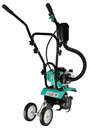 Бензокультиватор Sturm! GK83021F — практичная, маневренная и легко транспортируемая модель, подойдет для использования пожилым людям и женщинам в теплицах или на участке со сложным рельефом. Благодаря своим небольшим размерам и малому весу агрегат оптимально подходит для рыхления почвы, удаления сорняков, перемешивания удобрений и прополки междурядий теплиц, парников, а также работы на склонах и участках небольшого размера или клумбах. Узкая ширина захвата позволяет использовать культиватор даже на очень тесных проходах. Транспортировочная колесная база при работе опрокидываются вверх, позволяя пользователю правильно выставить глубину обработки при помощи сошника. Червячный редуктор и центробежное сцепление обеспечивают надежную передачу крутящего усилия на рабочий инструмент и не требует частого обслуживания, сокращая затраты на эксплуатацию. Двигатель с хонингованной и покрытой твёрдым хромом поршневой группой прекрасно сбалансирован, стабильно работает во всех положениях без потери мощности и имеет низкий расхода топлива, поэтому культиватор способен уверенно работать на крутых склонах. Низкий уровень шума во время работы дает возможность использования этой модели в утренние или вечерние часы, не мешая окружающим людям.