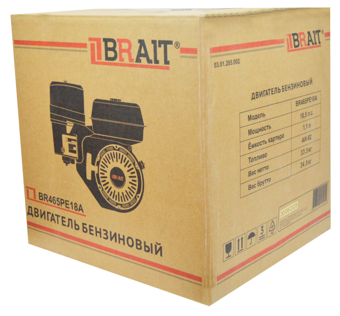 Двигатель бензиновый Brait BR465PE18A (18.5 лс, электростартер, катушка 18А, 25 мм)