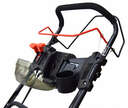 Одной из ключевых особенностей данной газонокосилки является возможность сборки мульчи, что позволяет эффективно использовать срезаемую траву. Выброс травы осуществляется назад и вбок, а вместительный травосборник на 60 литров обеспечивает продолжительную работу без частых перерывов на очистку.