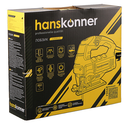 Hanskonner HJS0811LPE – универсальный и производительный электрический лобзик. Характеризуется оптимальными массогабаритными показателями и выверенной эргономикой – модель надежна в хвате и отлично контролируется. Лобзик оснащен 860 Вт электромотором и мощной механической частью – позволяет выполнять пропилы до 120 мм в древесине, и до 12 мм в металле. Возможность точной настройки инструмента применимо к конкретному материалу обеспечивают электронная система регулировки ходов штока, а также, функция маятникового хода с четырьмя режимами – с помощью специального переключателя пользователь выбирает оптимальный режим работы с упором на максимальную производительность, либо максимальное качество реза с наименьшим количеством сколов. Модель получила усиленную литую силуминовую платформу, стойкую к деформациям и механическим повреждениям. Для удобства пользователя, на Hanskonner HJS0811LPE установлен механизм безынструментальной замены полотна, за счет чего, смена оснастки производится максимально быстро и просто, без необходимости применения специального ключа. Эффективный выдув опилок из рабочей зоны обеспечивает функция 2WAYBLOW. При необходимости возможно подключение строительного пылесоса. LED подсветка рабочей зоны, дает возможность полноценно использовать лобзик даже в условиях недостаточного освещения. Мягкий, резиновый, четырехметровый сетевой кабель 4VelcroRubber обеспечивает значительную рабочую площадь до 50 м2, без применения дополнительного удлинителя, а также сохраняет гибкость и эластичность при низких температурах. Наличие специального хомута-липучки позволяет с легкостью зафиксировать кабель в собранном положении. Прочный пластиковый кейс гарантирует сохранность устройства и аксессуаров в процессе транспортировки.