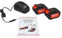 Инструмент обладает бесщёточным мотором, который обеспечивает высокую производительность и долгий срок службы. В комплекте 2 аккумулятора ёмкостью 4 Ач, что позволяет работать без перерыва на подзарядку.
