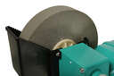 Практичная и мощная модель для «сухой» и «мокрой» обработки заготовок и выполнения работ с повышенными требования по качеству. Инструмент оснащен понижающим редуктором и «мокрым» кругом, повернутым для уменьшения габарита параллельно оси основного привода. Модель имеет диск для предварительного сухого шлифования и диск тонкой доводки на пониженных оборотах с использованием охлаждающей ванны. Устройство разработано для обработки и заточки инструментов с точными режущими кромками. Технологичный редуктор и точная балансировка ротора обеспечивает отсутствие биения наждачных кругов на рабочих оборотах для достижения наилучшего результата заточки на любых поверхностях, включая тонкие лезвия. Компактный размер станка позволяет установить его в любом удобном месте рабочего стола, а четыре отверстия для крепления к верстаку препятствуют его сдвигу от стартовой вибрации. Кроме этого станина имеет четыре резиновых демпфера по краям для снижения рабочих шумов и вибраций. Установленный асинхронный двигатель сможет выдержать значительные нагрузки и легко справится с плотным прижимом обрабатываемой детали к точильной оснастке без внезапной пробуксовки и перегрева, а также обеспечит постоянное число оборотов для качественной заточки.