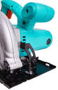В зависимости от конкретной задачи, за счет регулируемой опорной платформы, глубину пропила всегда можно установить на необходимую пользователю величину. Кроме того, опорная платформа имеет возможность регулировки и бесключевой фиксации в наклонном положении на угол до 45 градусов. Для максимально точной установки опорной платформы под требуемым углом предусмотрена специальная шкала с насечкой. Удобство смены оснастки обеспечивает функция блокировки вала шпинделя – с ее помощью замена пильного диска происходит быстро и легко без необходимости применения вспомогательного, стопорящего вал ключа. Безопасность при работе гарантируют автоматически сдвигающийся в процессе работы защитный кожух, прикрывающий вращающий пильный диск, а также блокиратор кнопки пуска, предотвращающий случайный запуск пилы. За счет предусмотренной функции быстрого доступа к щеткам, их замена осуществляется без долговременного разбора элементов корпуса инструмента. В штатную комплектацию пилы входят параллельный направляющий упор, гаечный ключ, а также комплект запасных щеток.
