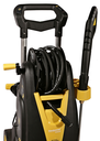 - Увеличенный до 10м эластичный шланг высокого давления на барабане позволяет свободно мыть автомобиль, чистить крыши дачных построек и другие объекты не передвигая мойку. Благодаря своей эластичности шланг легко разматывается и сматывается на барабан.