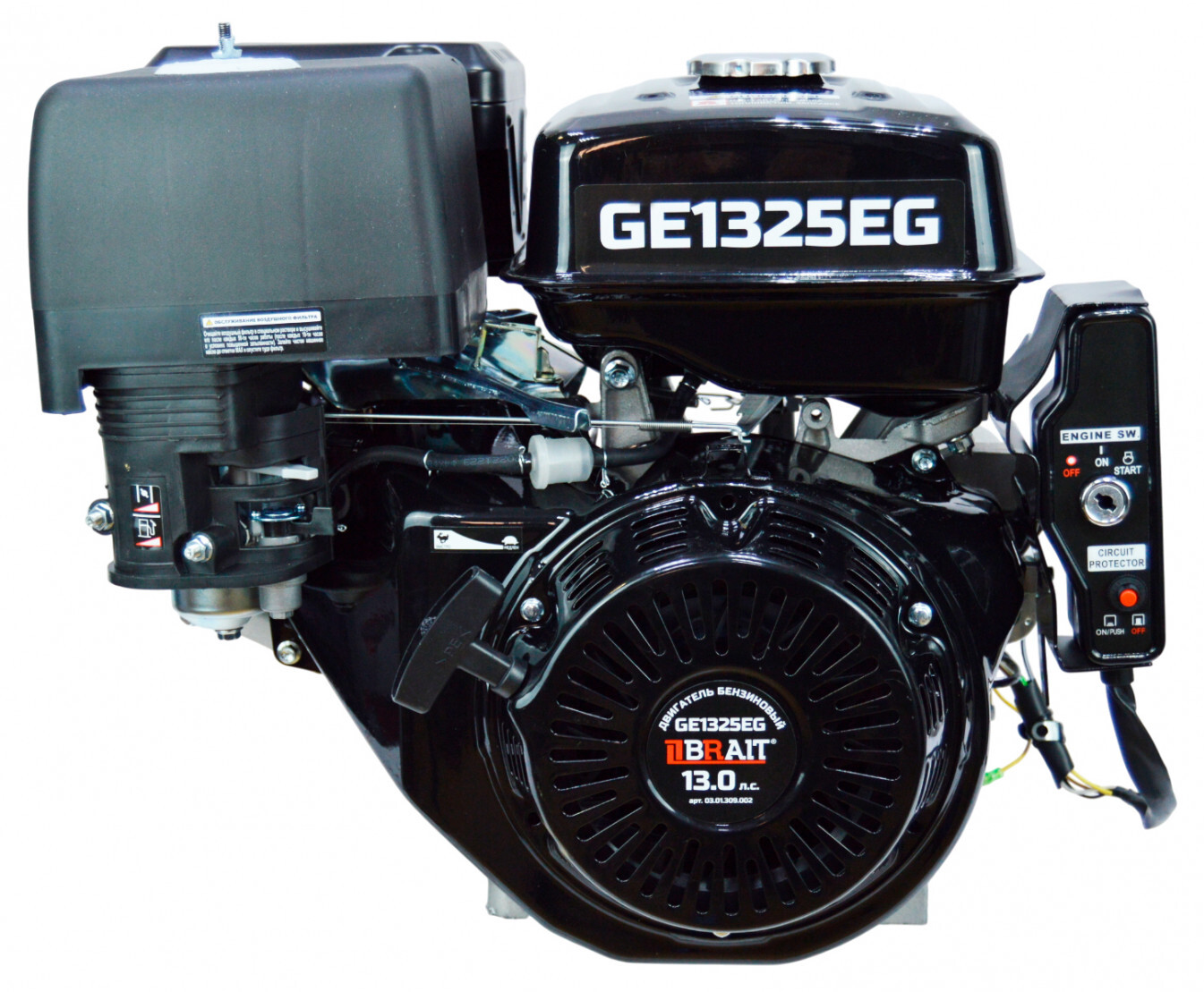 Характеристики Двигателя бензиновый Brait GE1325EG (13 лс, электростартер, вал шлицевой)