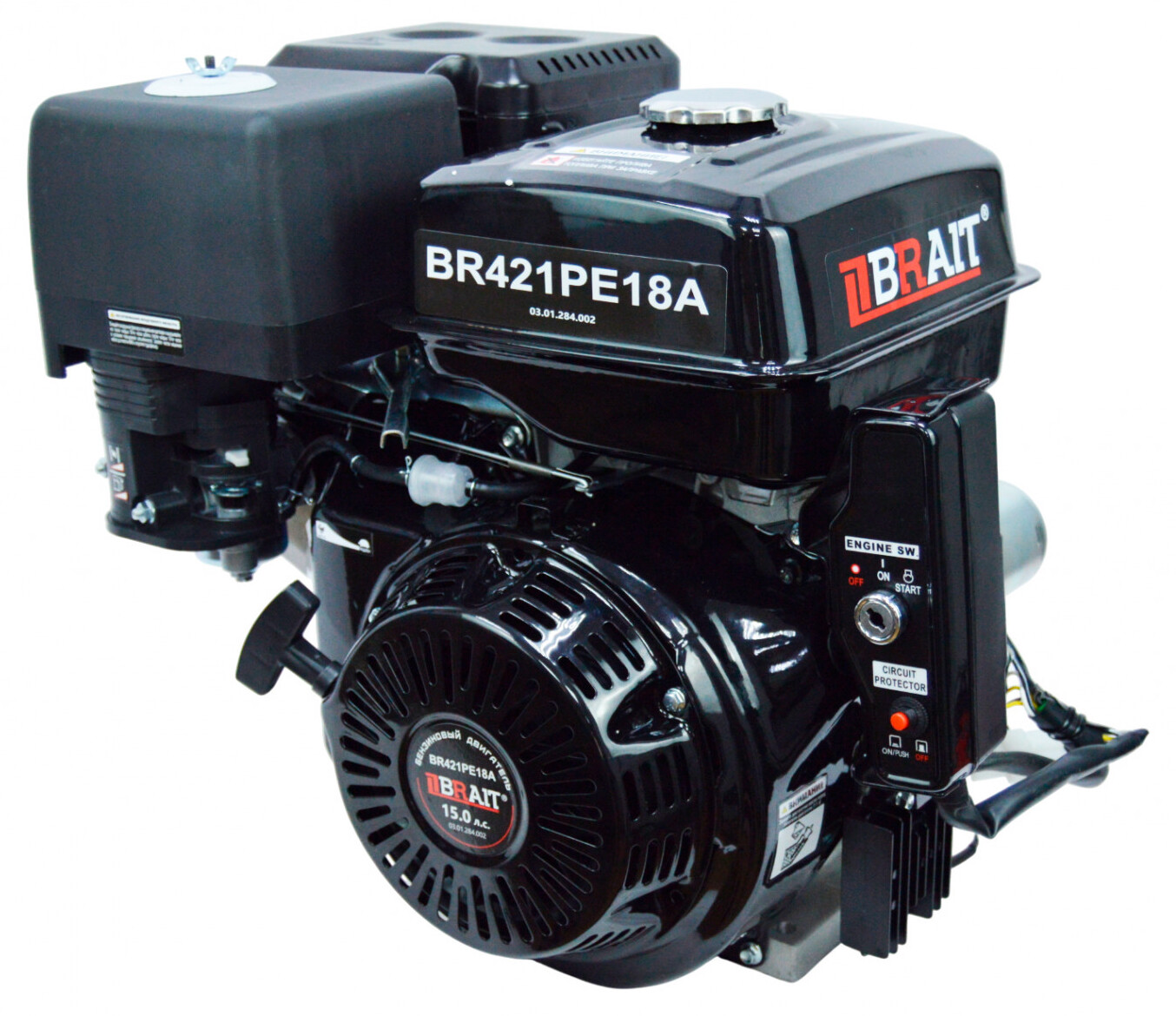 Двигатель бензиновый Brait BR421PE18A (15 лс, электростартер, катушка 18А, 25 мм)