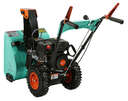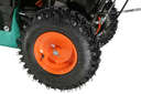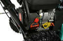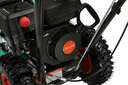 Снегоуборщик оснащен выпускным желобом, с регулировкой как по направлению, так и углу выброса, благодаря чему пользователь без труда может настроить оптимальное расстояние, на которое будет отбрасываться снежная масса. Максимальная дальность выброса достигает 11 метров. Для лучшего сцепления с поверхностью модель комплектуется специальными шинами с глубоким протектором.