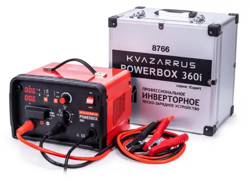 Профессиональное инверторное пуско-зарядное устройство KVAZARRUS PowerBox 360i современное и инновационное устройство, которое работает от однофазной сети 230 В / 50 Гц и подключается к стандартной розетке 16 А. Представляет собой устройство гибридного типа и предназначается для зарядки 12 и 24 В свинцово-кислотных аккумуляторных батарей c жидким электролитом (wet) емкостью от 40 до 800 Ач.