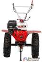 Двигатель этого агрегата имеет мощность 9 лошадиных сил, произведён по спецификации знаменитого завода LIFAN. Топливный бак объёмом 6 литров и экономичный расход топлива, дают возможность долгое время работать без дозаправки. Высококачественная коробка передач имеет 2 скорости вперёд и 1 назад. Аппарат оснащён мощным, цельнолитым чугунным редуктором, созданным специально для эксплуатации в жёстких условиях на тяжёлых грунтах и для обработки целины. Зубчатая передача, которая сообщает крутящий момент двигателя колёсам и фрезам, отличается надёжностью и долговечностью. Сцепка мотоблока изготовлена с большим запасом прочности и позволяет работать не только с сошником, плугом или окучником, но и с телегой.