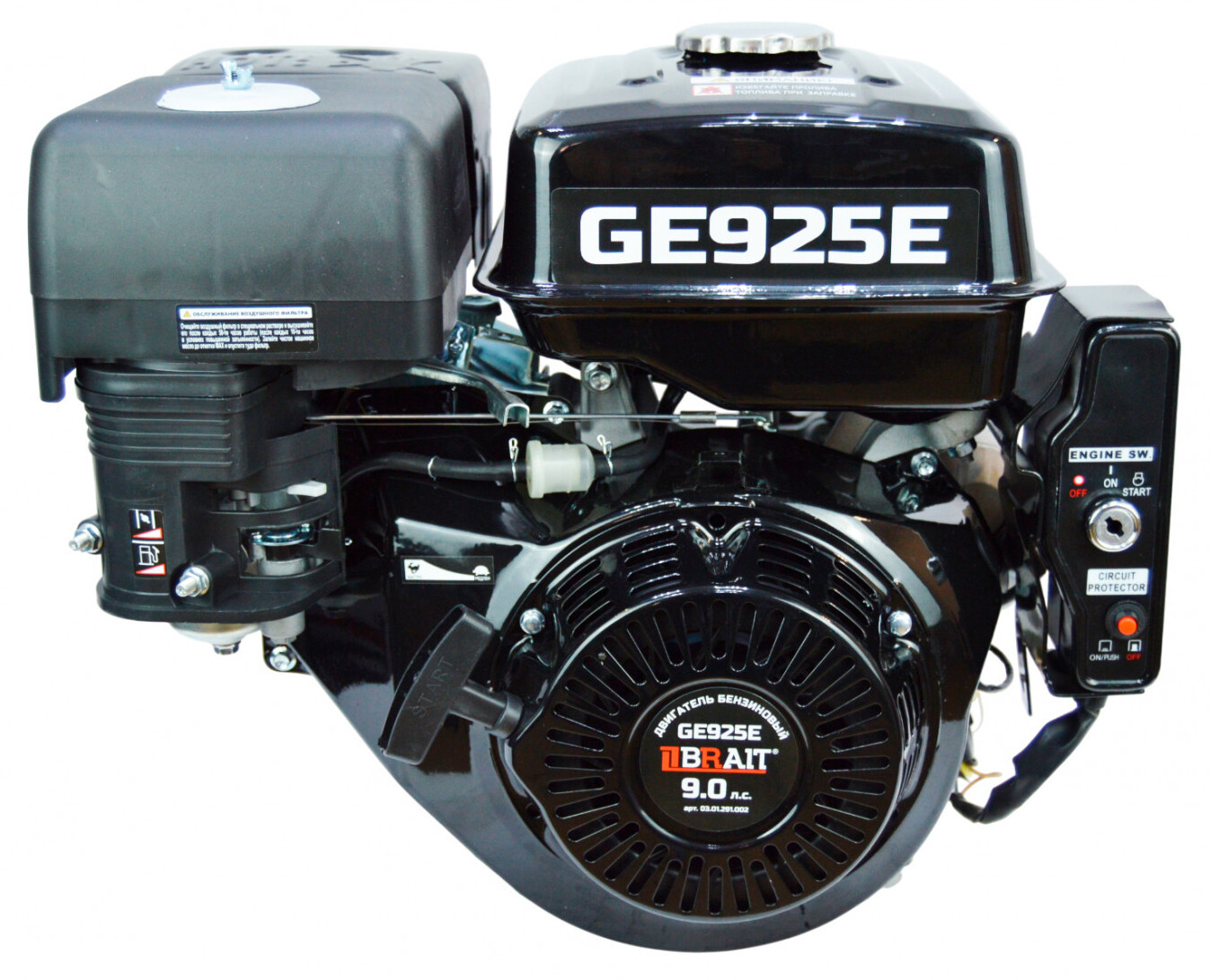 Двигатель бензиновый BRAIT GE925E четырехтактный одноцилиндровый силовой агрегат с воздушным охлаждением работает на бензине АИ-92. Это легкий старт, экономия топлива и простота управления.