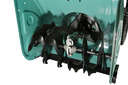 Зазубренный шнек первой ступени успешно измельчает слежавшийся снег и может справиться даже с настом толщиной до 2 см. Высокооборотистая вторая ступень снегоуборочного агрегата отбрасывает снег на расстояние до 12 м. Широкие колеса с развитым анти-снежным протектором позволяют уверенно двигаться по рыхлому снегу.