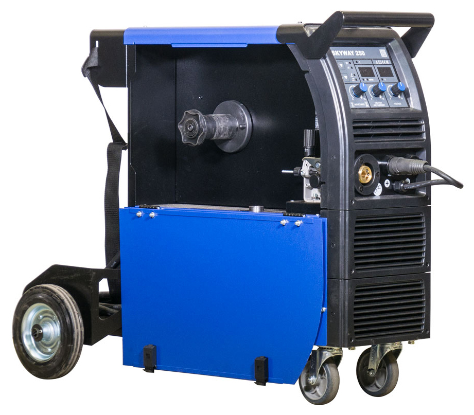 SKYWAY 250 – однофазный инвертор предназначенный для полуавтоматической сварки в среде защитного газа MIG-MAG, для работы с порошковой самозащитной проволокой в режиме NO GAS, а так же для ММА сварки покрытым электрдом.