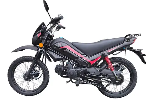 - Мопед оборудован двигателем воздушного охлаждения объемом 110 см³, фарой, информативной приборной панелью, электро и кикстартером