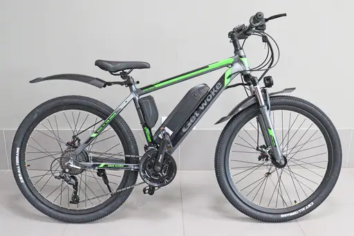 Описание Электровелосипед GET WOKE MTB (АКБ 10Аh, алюминевый обод,27 скоростей) СЕРО-ЗЕЛЕНЫЙ