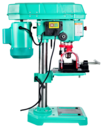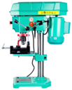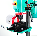 Практичная модель отличается исключительной точностью и очень простым обращением. Настольный сверлильный станок может использоваться в домашних мастерских, мебельном производстве и при выполнении ремонтно-слесарных работ. Он предназначен для точного сверления заготовок из дерева, пластмассы и металла. Сверло опускается с помощью штурвала с тремя рукоятками, контроль глубины производится с помощью индикаторной линейки, расположенной на переднем торце корпуса. В отличие от ручных дрелей станок погружает сверло в заготовку всегда строго вертикально. Станок предоставляет выбор из пяти предусмотренных скоростей для создания оптимальных условий обработки материалов от высокой мощности - на первой, до высокой частоты вращения - на пятой передаче. Высококачественный прочный сверлильный патрон, закрываемый специальным ключом, сохраняет постоянное усилие зажима, даже во время проведения сложных сверлильных работ.