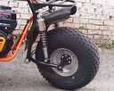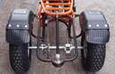 - с такой трансмиссией, скорее тяговой, чем скоростной (редуктор с автоматиским сцеплением) этот трицикл достаточно устойчив, в то же время максимальной скорости до 40 км/ч вполне достаточно для его применения.