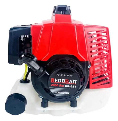 Двигатель бензиновый BRAIT 2х тактный BR-631 – мощная модель двухтактного двигателя. Мотор имеет объем цилиндра в 63 куб.см. Такой объем позволяет выдавать мощность до 4 л.с. Емкость топливного бака 1,4л. Пластиковый топливный бак защищен стальной опорной пластиной. В бак заправляется смесь (бензин АИ-92+масло для 2-тактных двигателей). Благодаря небольшому количеству масла в смеси, она легко выгорает, предотвращая залипание поршневых колец. Запуск производится продергиванием шнура кик-стартера. Для простоты запуска непрогретого мотора, есть воздушная заслонка, при помощи которой можно контролировать объем подачи топлива в камеру сгорания.