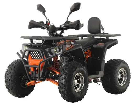 Hammer 2 отличается от других ATV своим внешним видом, его стиль напоминает стиль известного семейства внедорожных автомобилей Хаммер. ATV Hammer 2 является представителем популярного на сегодня класса ATV, этот класс популярен из-за оптимального баланса характеристик и цены. Плюсы этого ATV заключаются в цене, доступной широкому кругу людей, в его конструкции и размере, данный ATV подходит максимально большому количеству взрослых людей и будет удобен любому. Также здесь используется вариаторная трансмиссия, что очень удобно, так как не нужно выбирать передачу, здесь три положения селектора трансмиссии: вперед, нейтраль и назад. Скорость регулируется вариатором, что очень комфортно, здесь не нужно выбирать передачи, нужно только нажимать на гашетку газа и ATV поедет быстрее либо медленнее, придаточное отношение при этом будет меняться, а не будет оставаться постоянным как у ATV с горизонтальным двигателем, когда передаточное отношение остается постоянным и увеличиваются обороты. Другими плюсами является наличие переднего и заднего багажника и более крупные колеса размером 10 дюймов, также более серьезная светотехника и панель приборов, по сравнению с предыдущим классом ATV. Его длинноходная подвеска комфортно отрабатывает неровности, даже если вы едете на достаточно хорошей скорости по ухабистой дороге, также на данном типе ATV можно ехать стоя, что позволяет более комфортно преодолевать препятствия. Данный ATV если его сравнивать с полноприводными вариантами имеет большую разницу в цене, данный вид ATV в несколько раз дешевле самого бюджетного полноприводного квадроцикла. Также по сравнению с полноприводными вариантами отличием является его легкий вес и относительно компактные габариты, его без проблем можно вытащить из грязи и хранить в гараже не занимая много места. Двигатель, который используется в этом классе ATV, имеет объем 180см3, вариаторную трансмиссию и масляное охлаждение, также имеется аварийный запуск, который осуществляется с помощью ручного стартера, а по умолчанию используется электростартер. В целом ATV Hammer 2 можно рекомендовать максимально широкому кругу лиц, в том числе взрослым людям, которые хотят приобрести ATV начального уровня, для того чтобы можно было определиться подходит ли им эта техника или нужна техника более дорого класса, например, тяжелые полноприводные АТВ.
