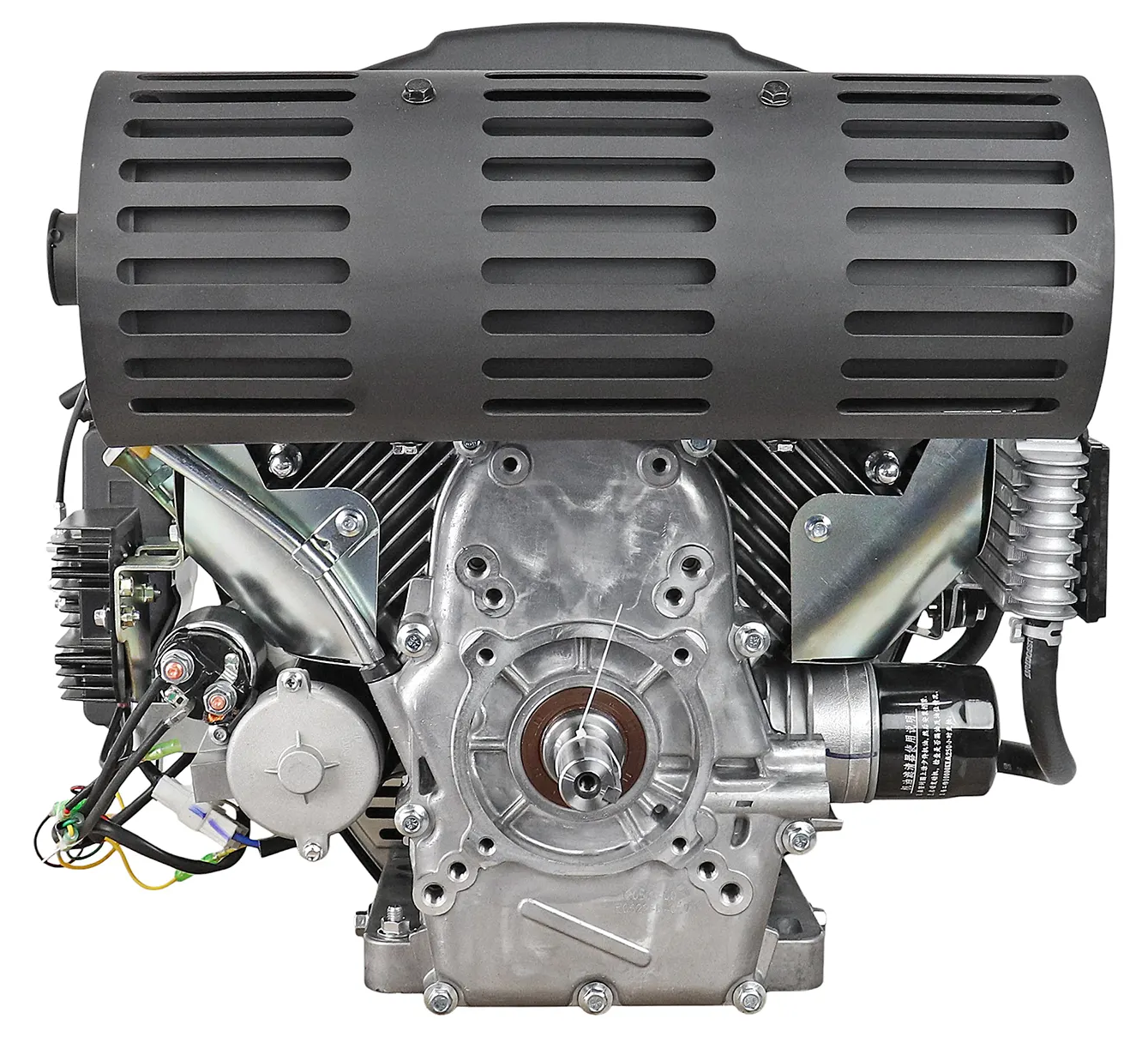 Этот двигатель - двухцилиндровый. В отличие от малых двигателей, у него два цилиндра, которые передают крутящий момент на общий коленвал.
