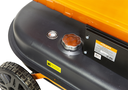 Дизельная тепловая пушка непрямого нагрева DKH20CH предназначена для работы как при строительстве или ремонте в производственных помещениях и на открытых площадках, так и в жилых помещениях. Модель оснащена теплообменником из высококачественной нержавеющей стали марки, разделяющим зоны горения топлива и нагрева воздуха. Благодаря данному трехходовому теплообменнику, КПД работы теплогенератора достигает уровня до 85%. Тепловая мощность - 20 кВт тепла, а производительность 560 м3/ч. Уникальная конструкция позволяет отводить продукты сгорания за пределы обогреваемого помещения. Для максимальной безопасности пушка оснащена системой защиты от перегрева, контролем стабилизации пламени.