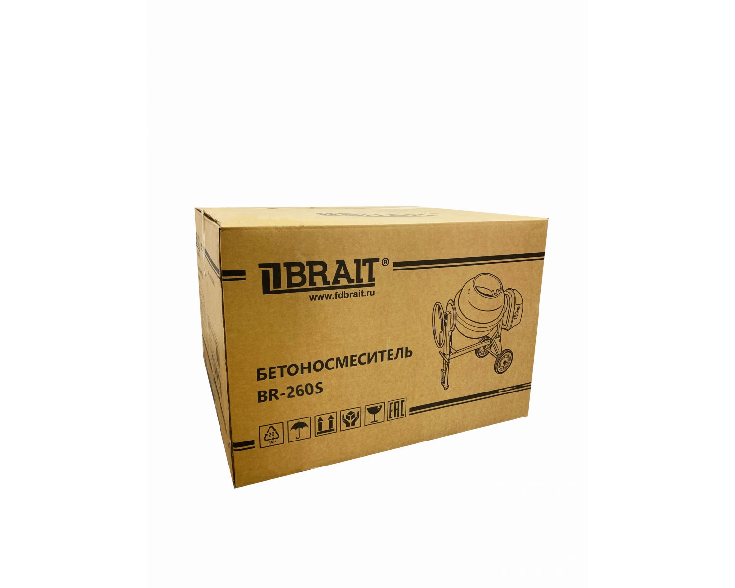 Характеристики Бетоносмеситель BR-260S (1200Вт, 220В/50Гц, допуст.загрузка 160л)